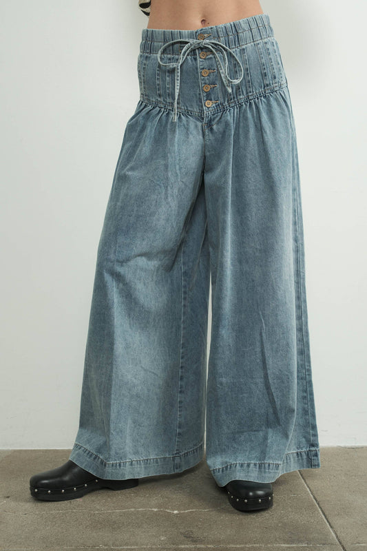 YOKE PINTUCK WIDE LEG DENIM PANTSRegular price $20.00 USDRegular priceUnit price / per-