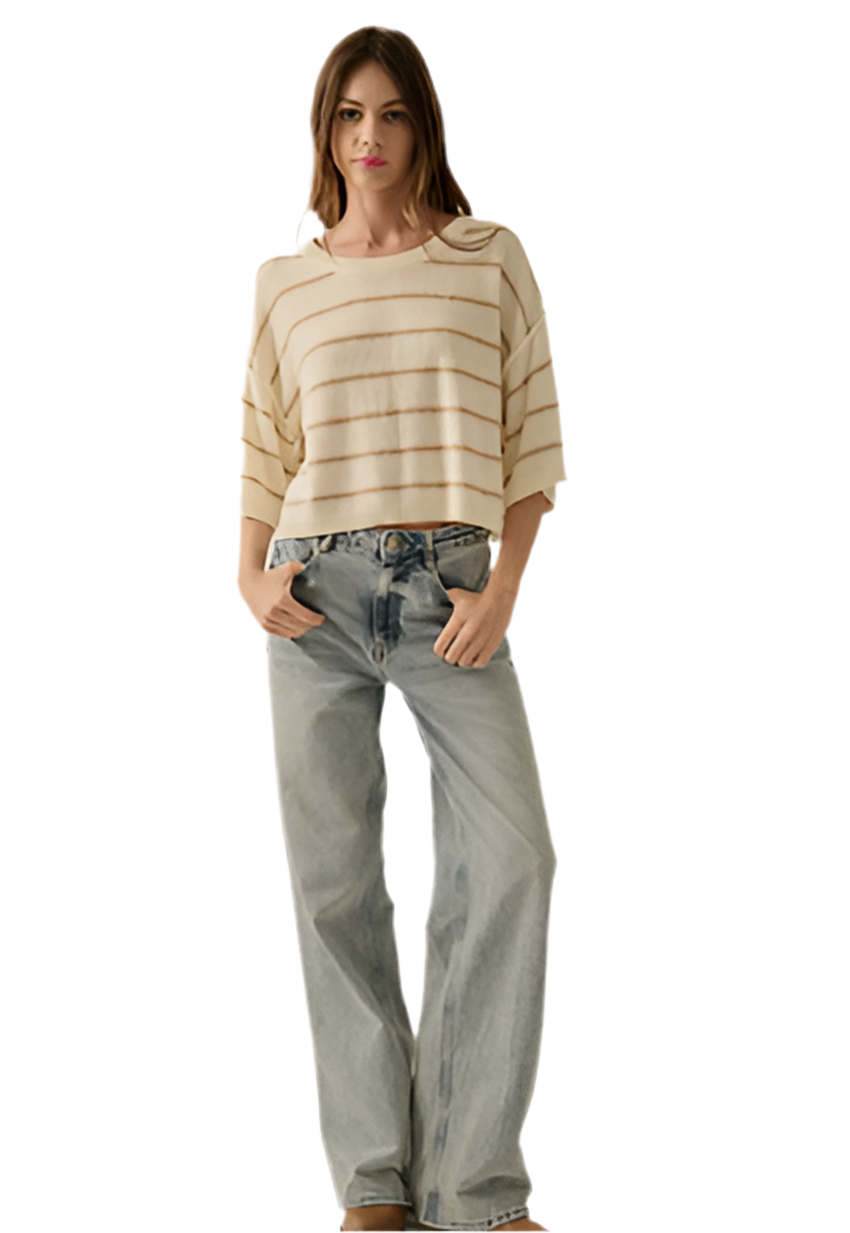 She’s soft, golden, and made for the kind of days where ease is the goal. The Soleil Sweater is a lightweight knit that wraps you in warmth without the weight — a soft neutral base kissed with subtle bronze stripes that remind you: your glow is always there.