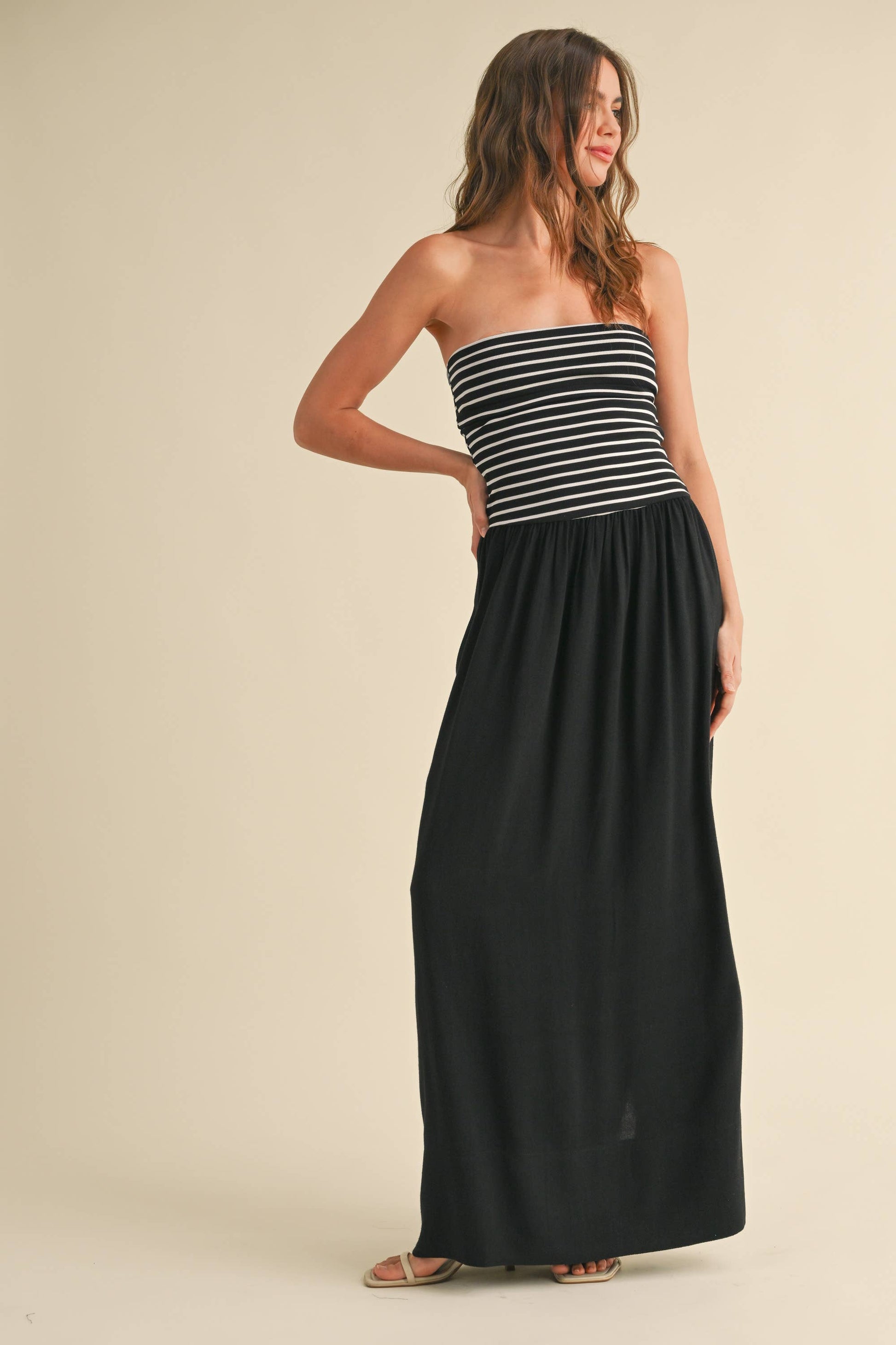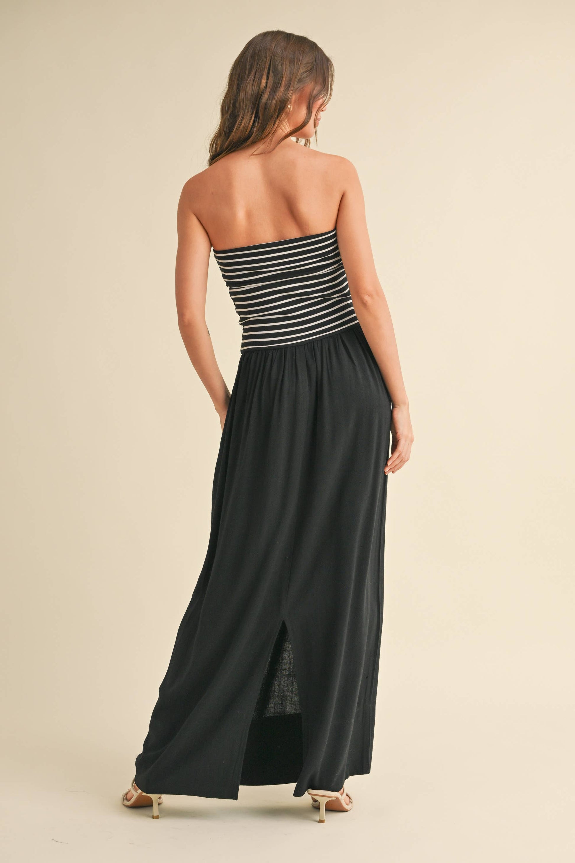 STRIPE RIBBED TOP WITH LINEN DRESS