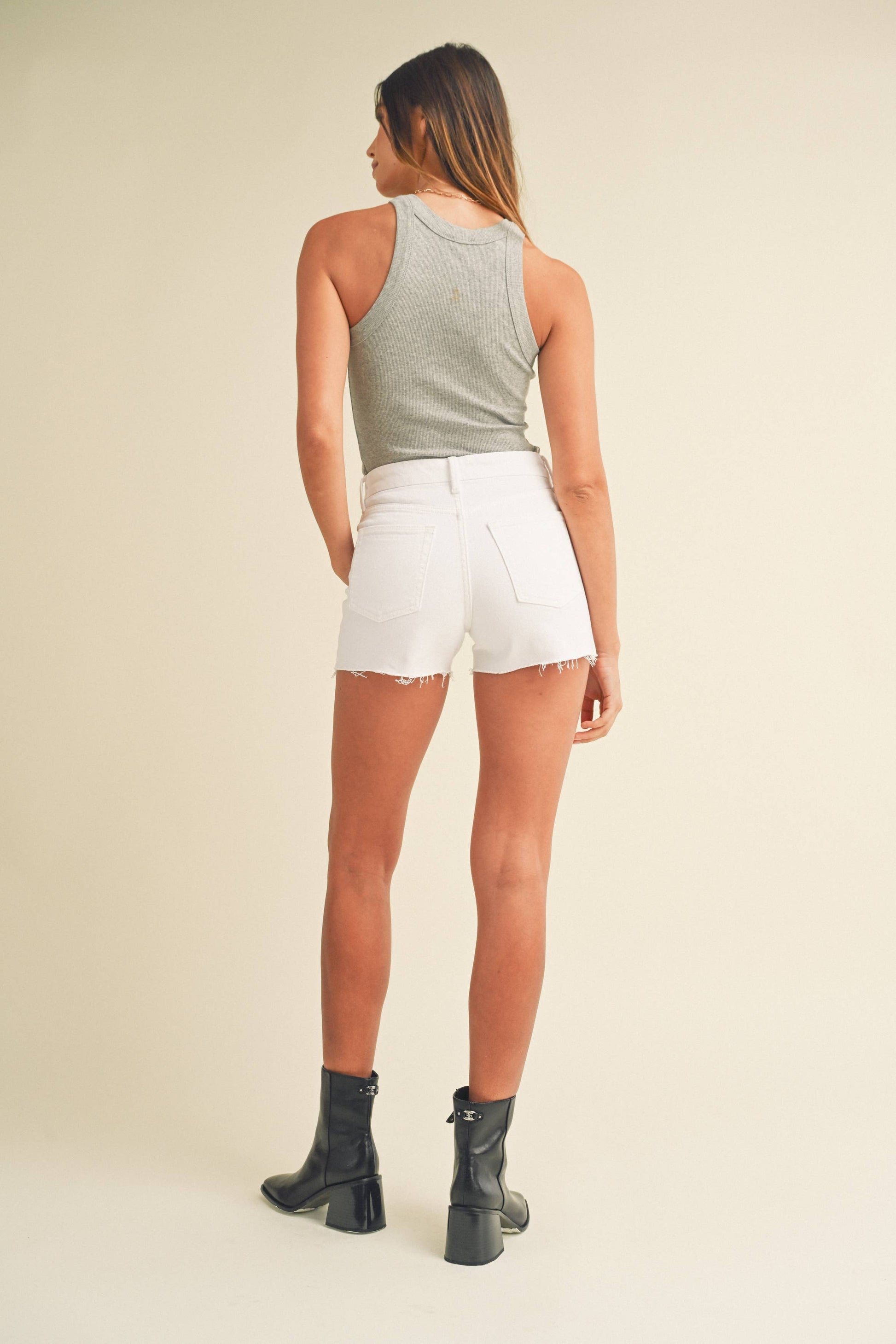 10.5'' RISE, 3'' INSEAM White Denim - Comfort Stretch Weekend Short. These run small, size up one.