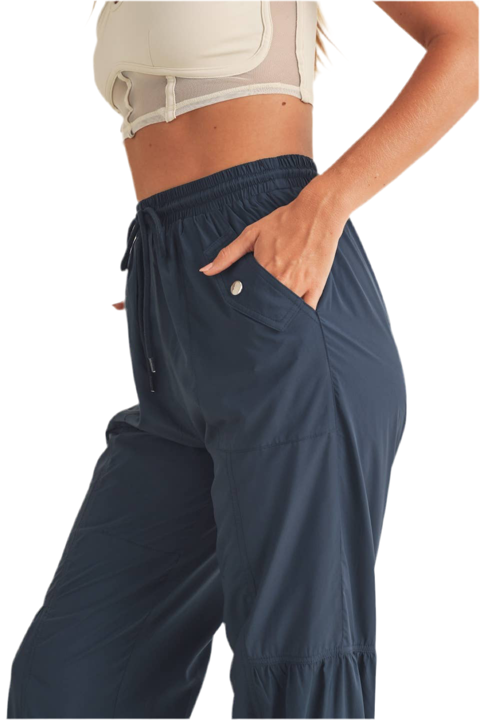✨ Relaxed cargo fit with gathered ankle cuffs