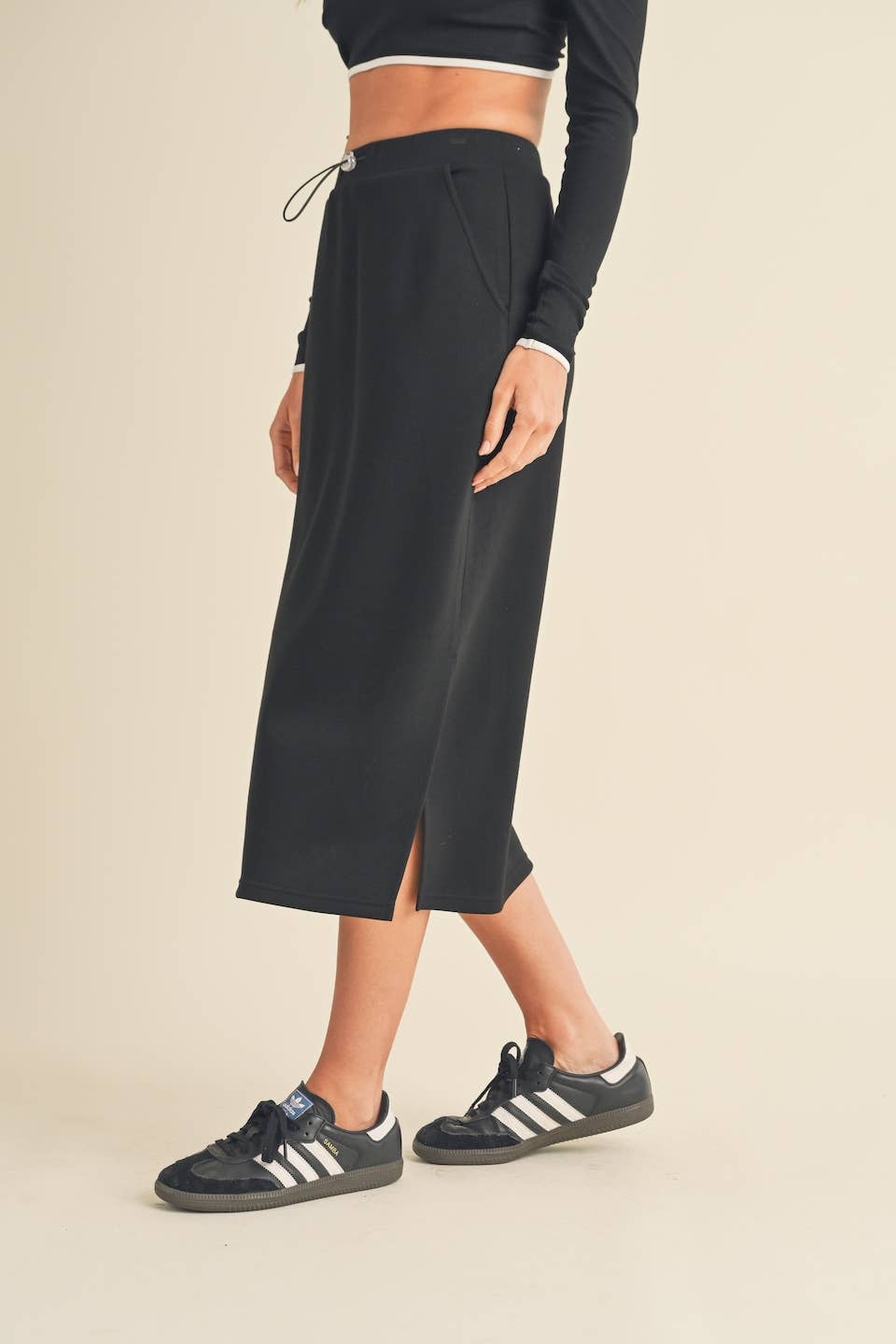 This isn’t just a skirt — it’s confidence in motion. With its clean lines, adjustable drawstring waist, and sporty slit detail, it blends relaxed energy with bold intention. Whether you’re dressing it up or keeping it street-ready, this piece moves with you — grounded, effortless, and unapologetic.