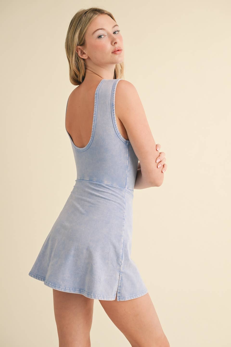 Our mineral wash sleeveless dress with a wrap tie front lets you customize your fit with ease. Built-in shorts give you the freedom to move confidently, while the soft, breathable fabric keeps you comfortable all day. Perfect for days when you want to feel relaxed, stylish, and completely yourself.
