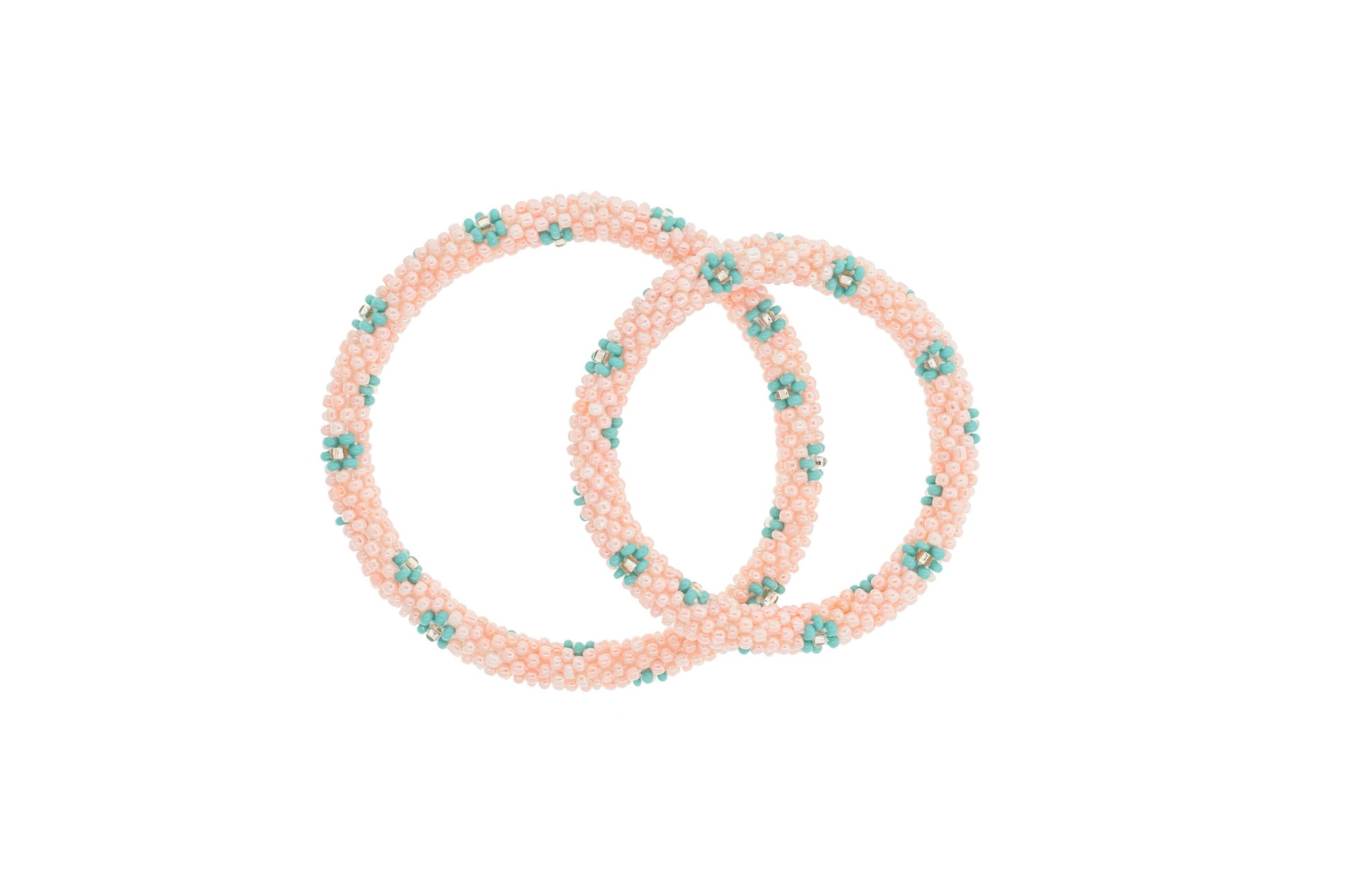 Our Turks and Caicos Roll-On® Bracelets will take you on a magical vacation on the islands. The teal, purple, pink, and gold of this handmade set are a beautiful pop of color to add to your next vacation outfit. The teal matches the beautiful waters you’ll see on your magical vacation to these islands. - The Original Roll-On® Bracelet - Set of 2 bracelets - 1 adult 7” size, 1 kid 6” size - Lifetime Guarantee - Ethically Crafted by our women artisans in Nepal - High quality glass beads and hand-dyed cotton thread - Expands over your hand to fit most wrists.