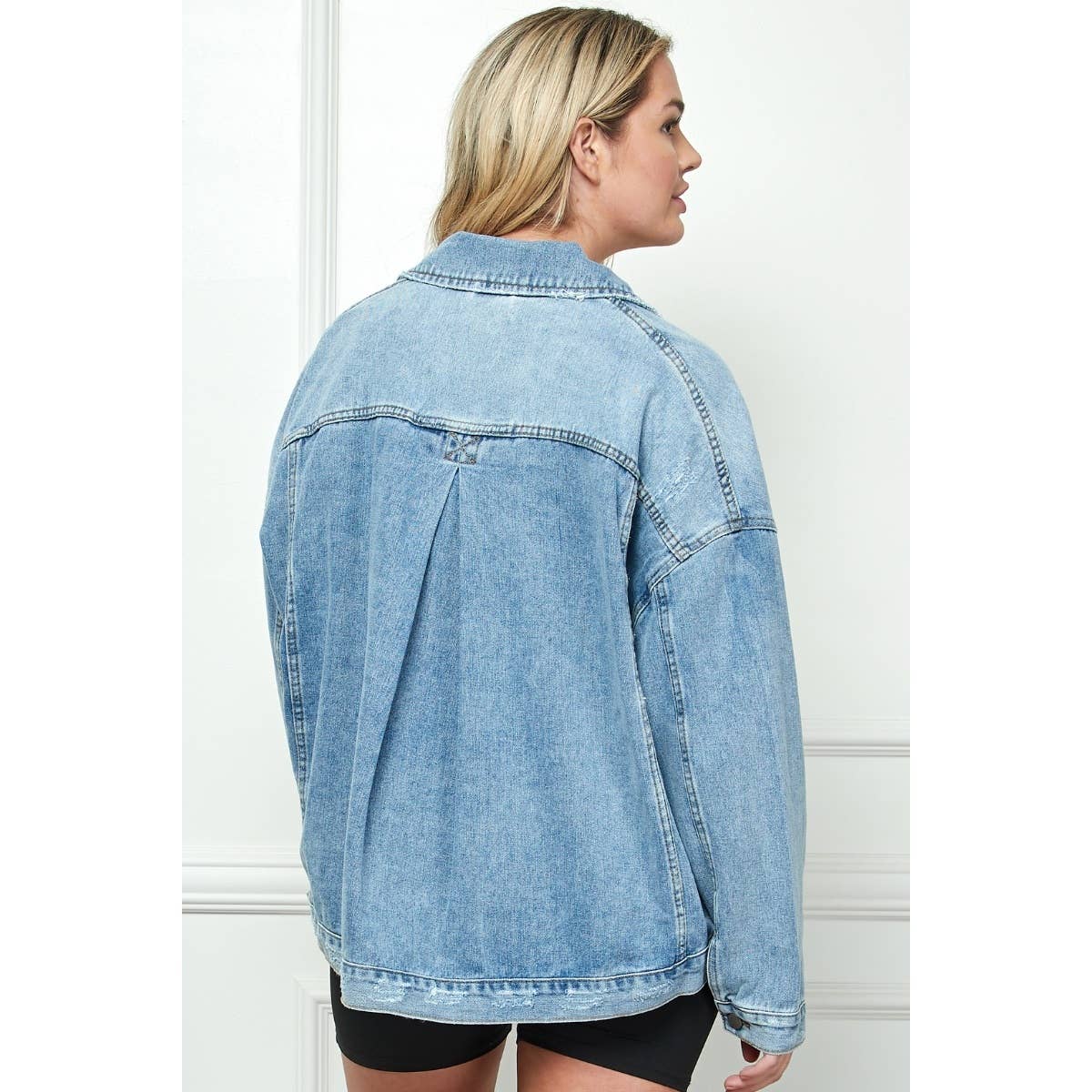 Plus Size Oversize Pleated Back Color Denim Jacket