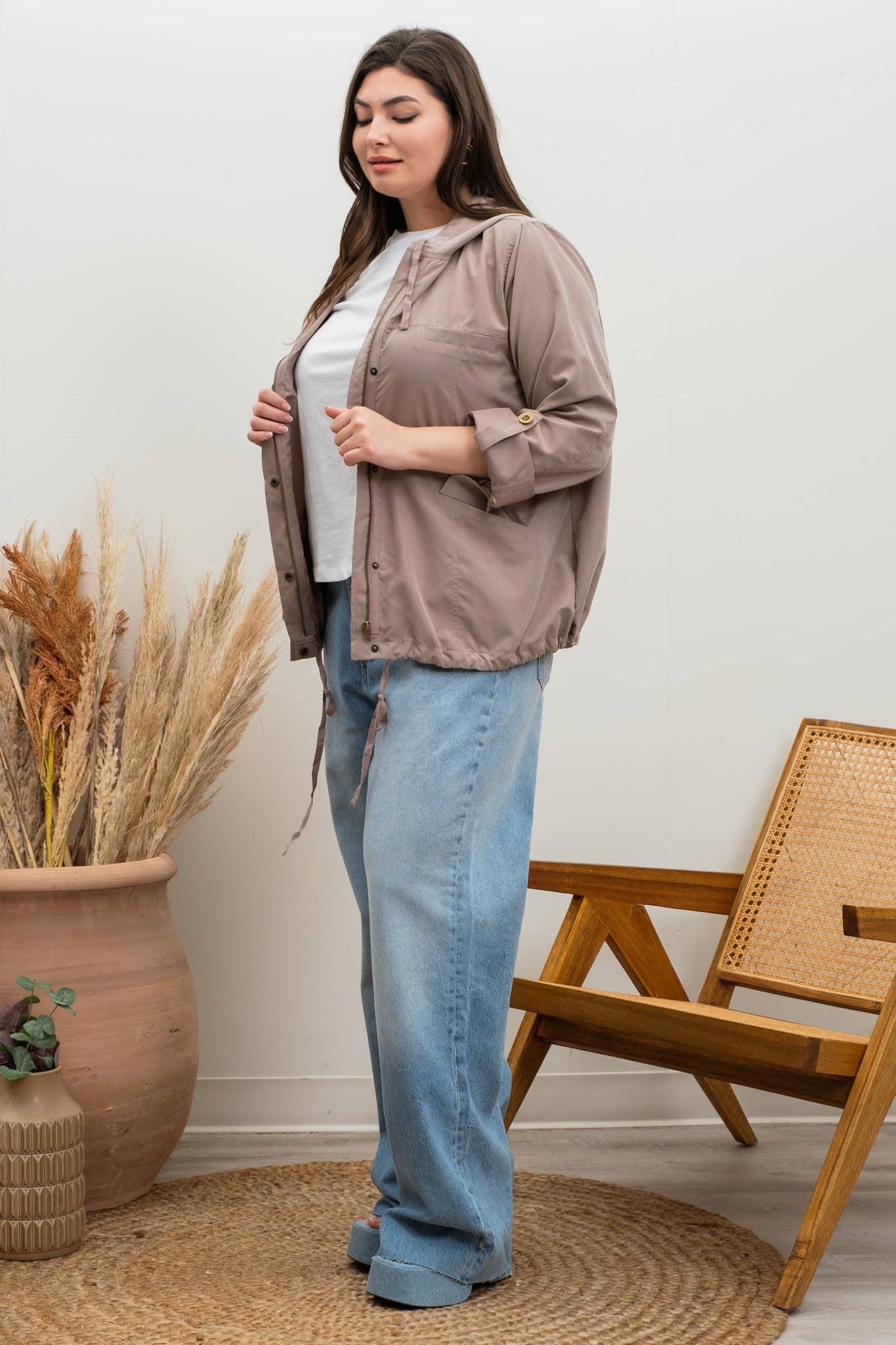 PLUS SNAP BUTTON ZIP UP HOODED JACKET