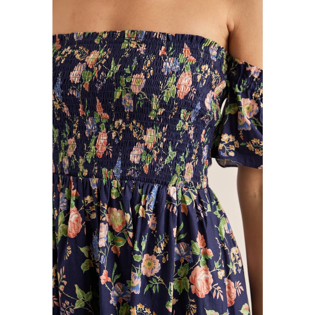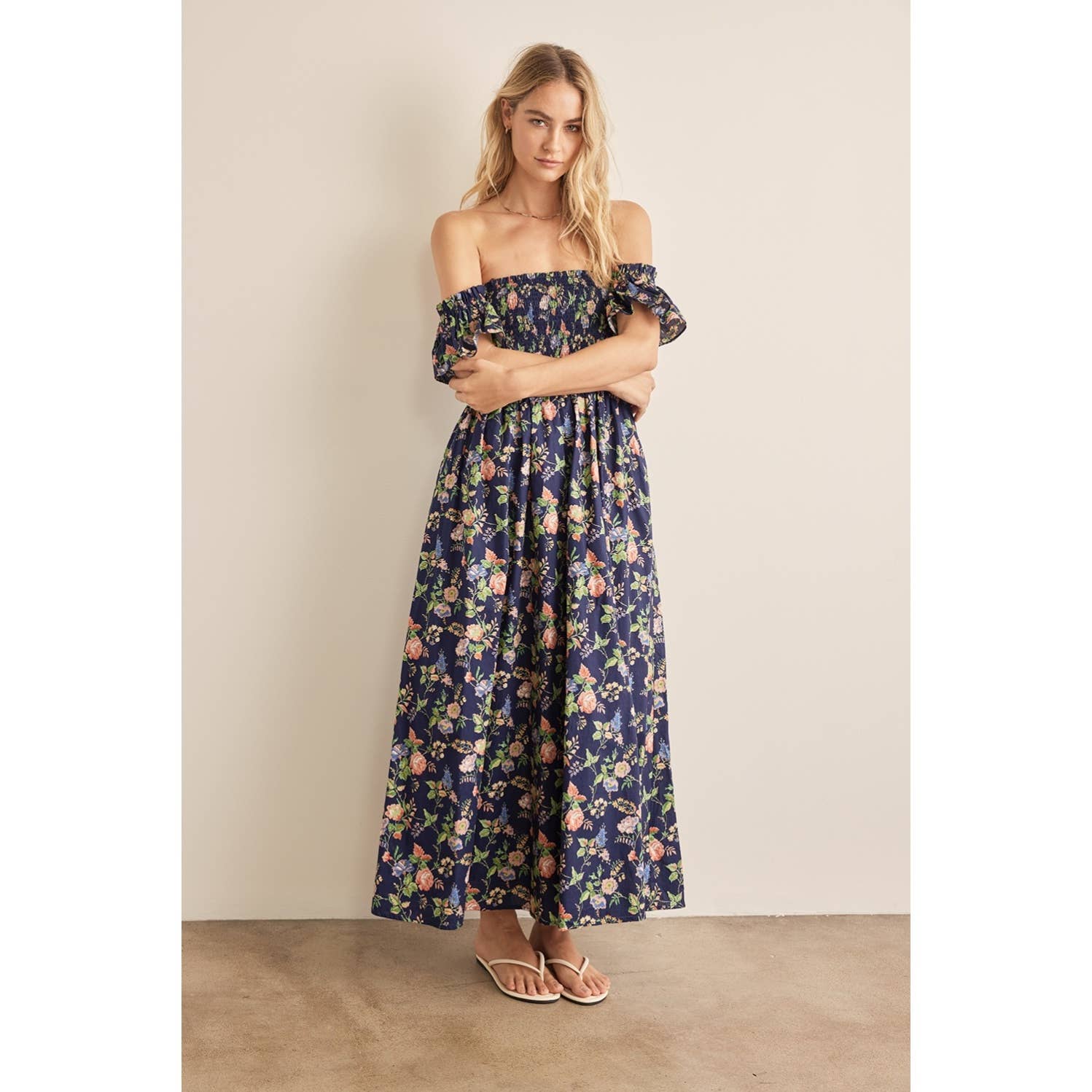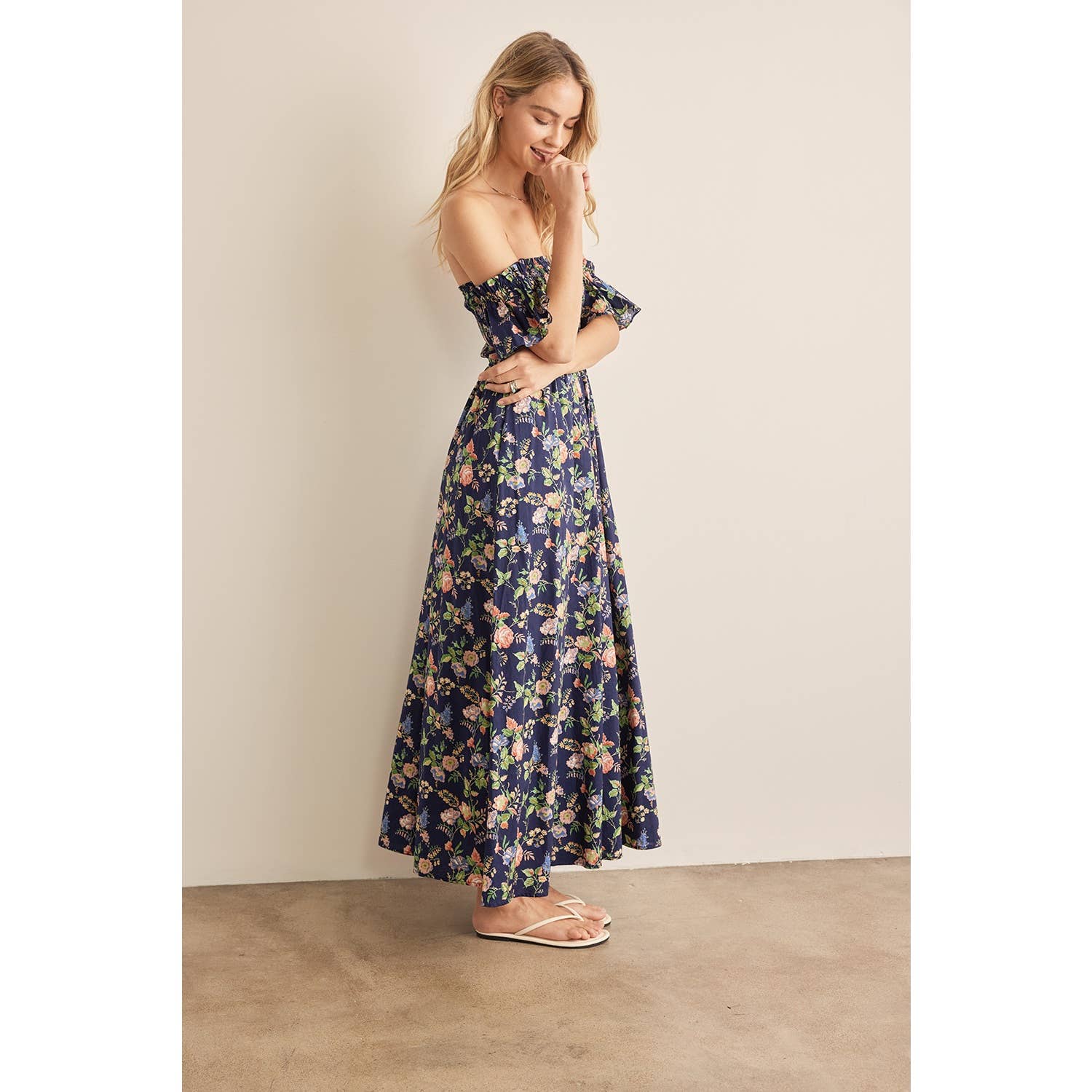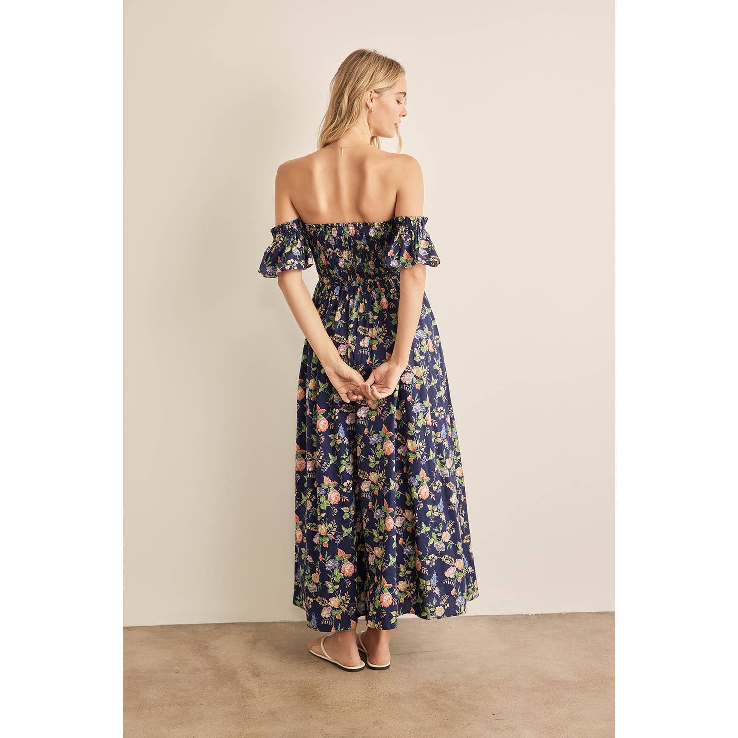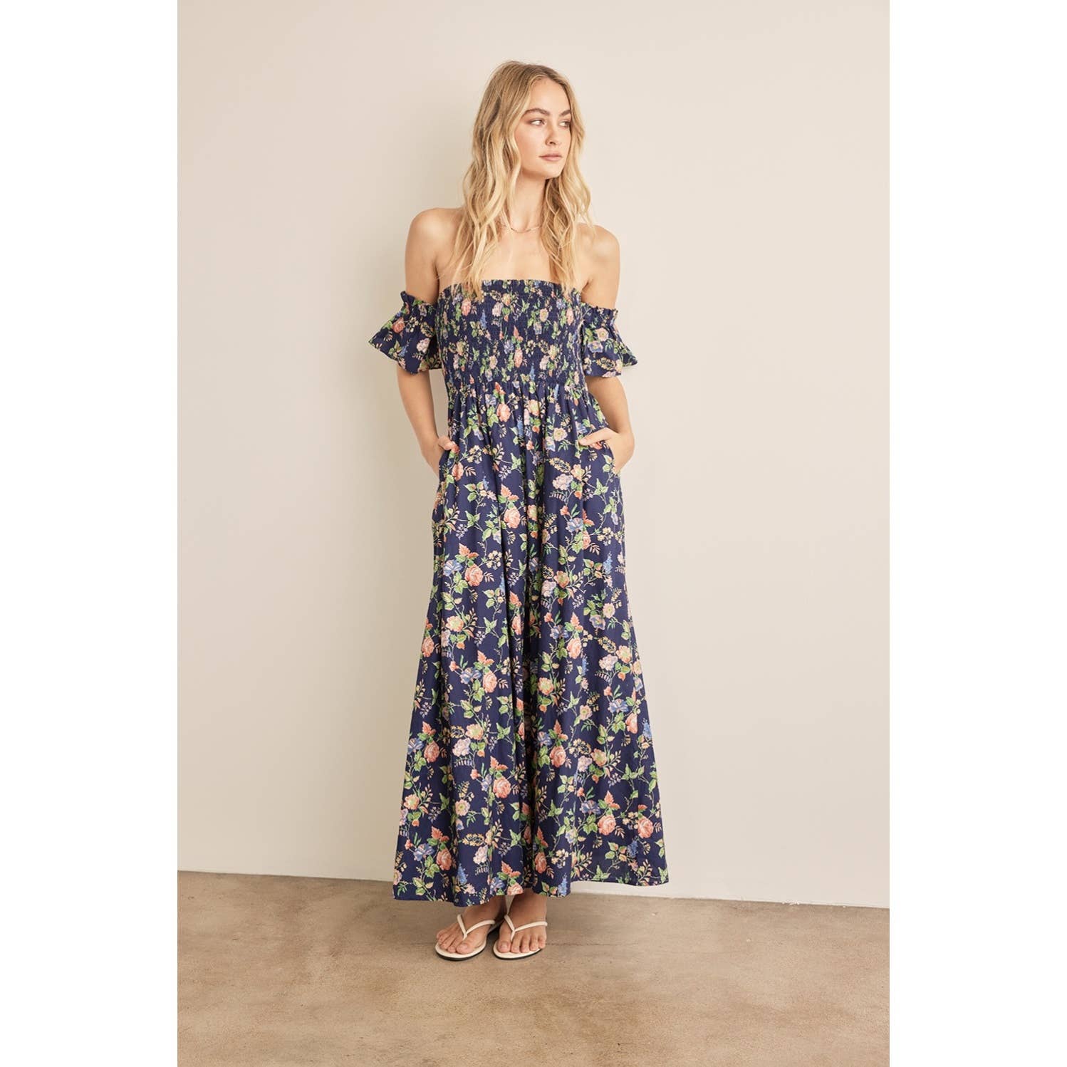 Unleash your adventurous side with our Smocked Off the Shoulder Maxi Dress! The stretch bodice and side seam pockets provide comfort and convenience while the elastic ruffle sleeves add a touch of boldness. Perfect for any daring fashionista looking to make a statement!