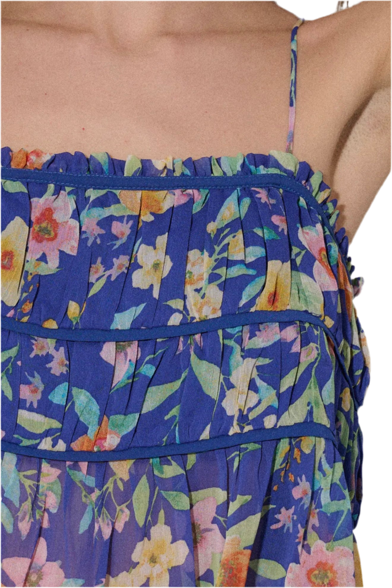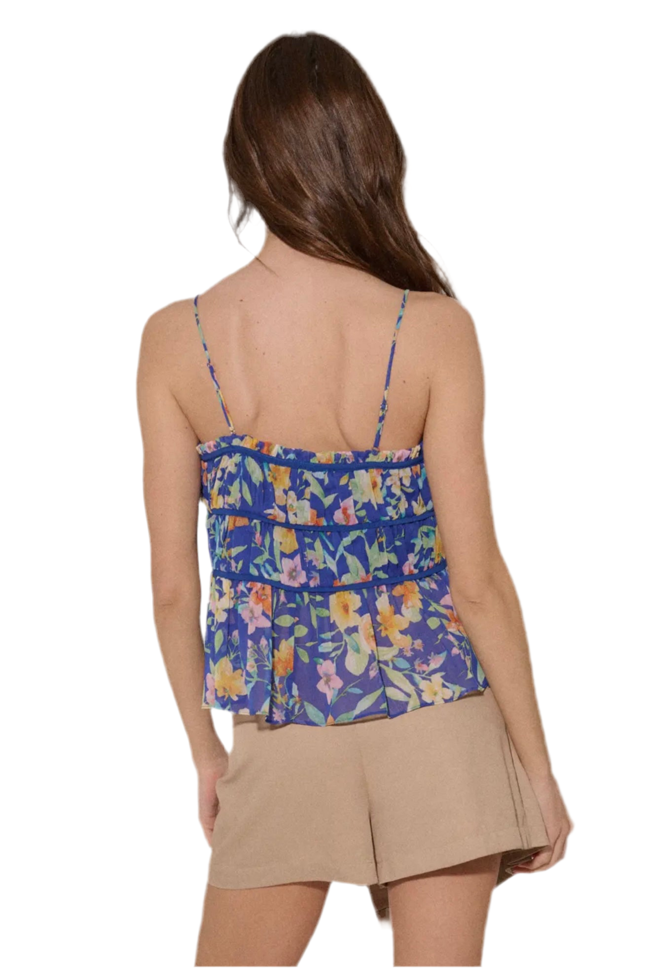 This floral cami brings lightness and color to your day. With soft tiered ruffles, a floaty fit, and vibrant hues dancing on a deep blue base—it’s the top you’ll reach for when you want to feel free, feminine, and fully expressed.