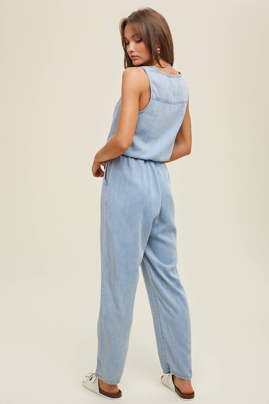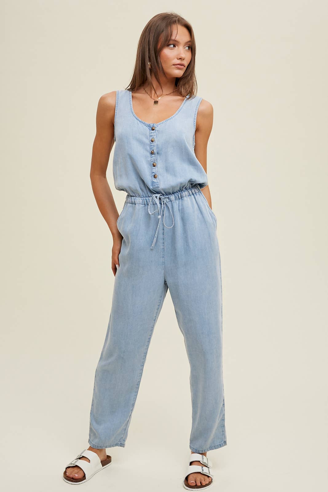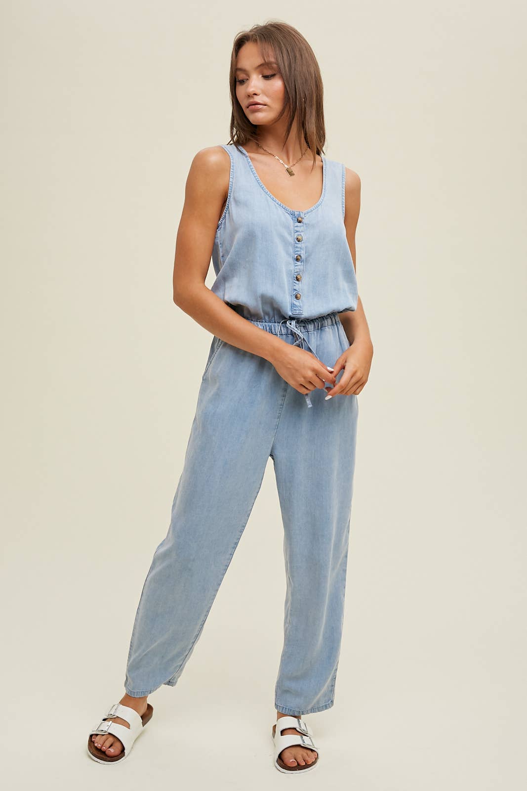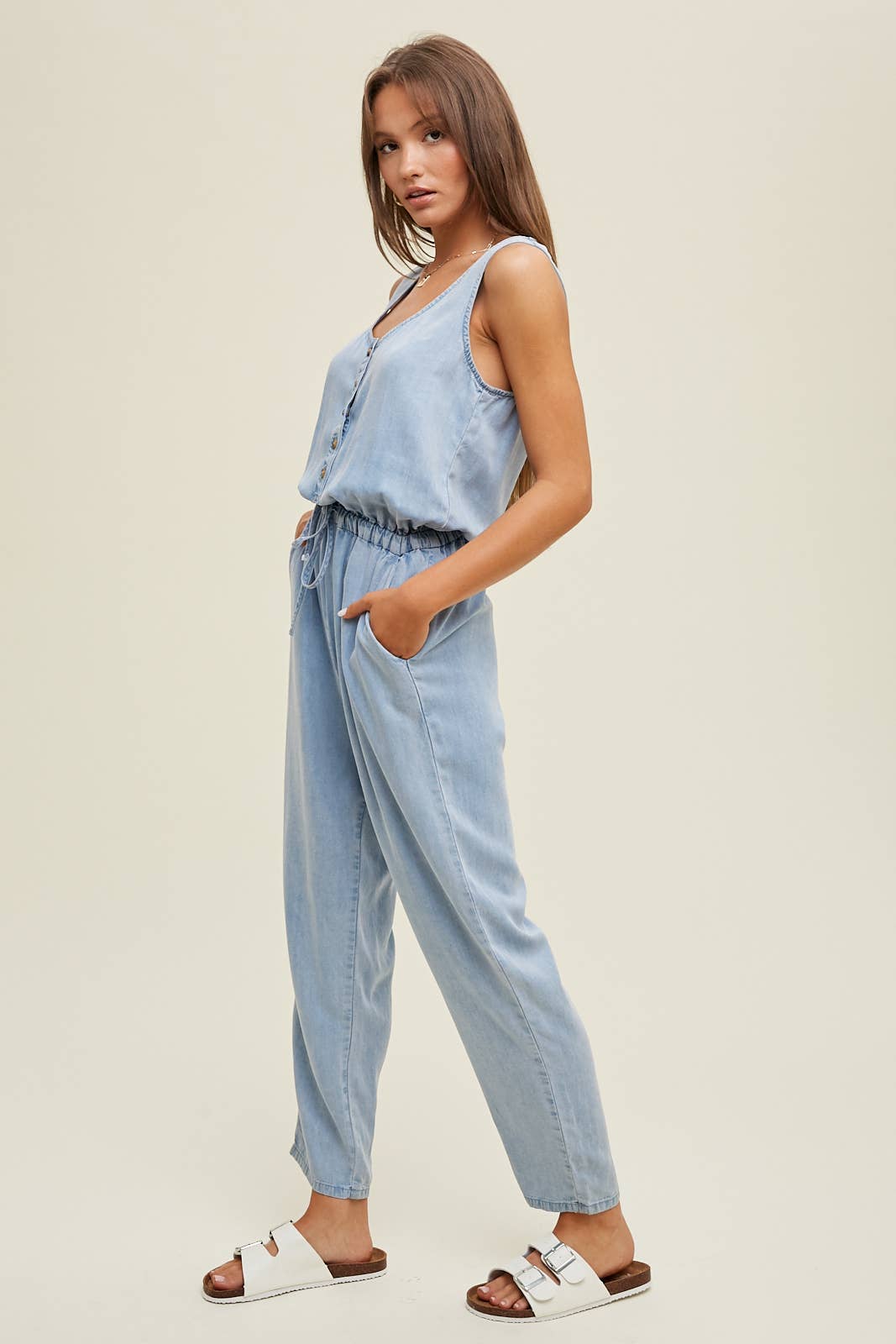 WASHED TENCEL BUTTON-UP TANK JUMPSUIT